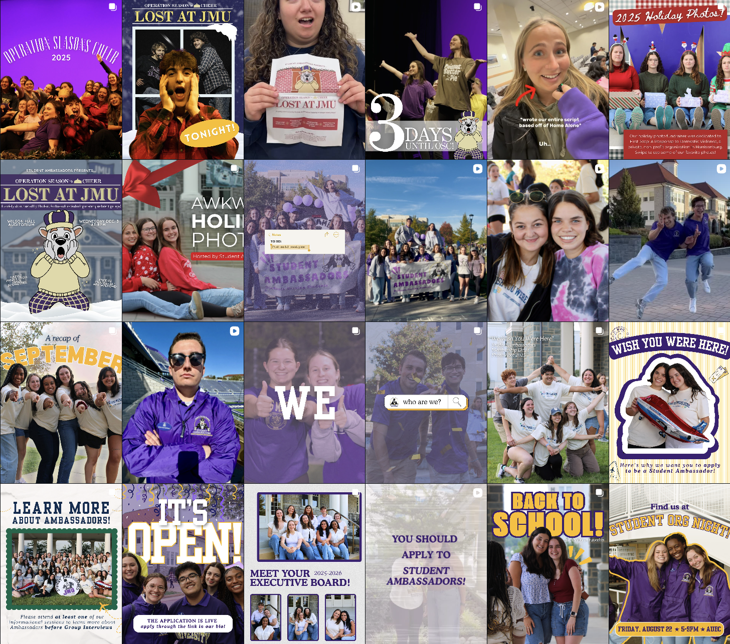 I have loved managing the JMU Office of Admissions Instagram page for the past 3 years. The consistent, creative, and strategic posting has grown my design skillset immensely.